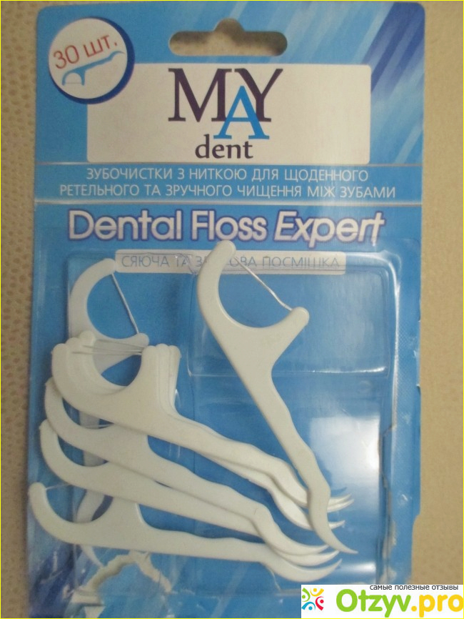 Однажды мой стоматолог, посоветовал приобрести очень удобную и нужную вещь – зубную нить с держателем. В магазине, где продавались товары по уходу за зубами, я нашла какие-то держатели, правда совершенно незнакомой мне фирмы - Зубочистки c зубной нитью My dent Dental floss expert. Других держателей не было, поэтому я купила их.