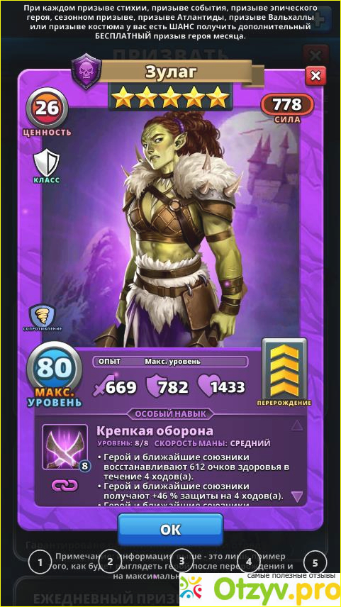 Зулаг-хороший целитель, но только для себя и ближайших союзников. Средняя скорость набора маны делает её более ценной в сравнении с Рафаэлем, из-за его медленной маны, хотя он лечит всех. Сильные защитные баффы Зулаг могут конкурировать с баффами Ригарда в качестве целителя в фиолетово-темных командах для некоторых игроков. Но опять же, Ригард лечит всех союзников, что делает его превосходным целителем во многих ситуациях. На данный момент мой план состоит в том, чтобы продолжать использовать костюм Ригарда, так как версия с костюмом позволяет усиливать и лечить всех героев. Однако Зулаг вполне подходит для танковой обороны в паре с кем-то.