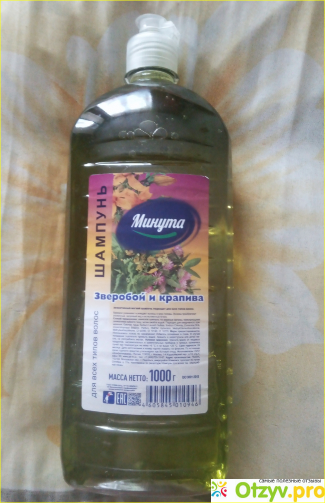 Обзор продукта.В бутылке шампунь, значительно ярче окрашен и более плотный. Запах вовсе не крапивный и не зверобойный, а скорее луговой травы.